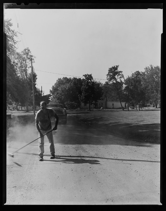 Joe, preparing the streets for oil and chip.